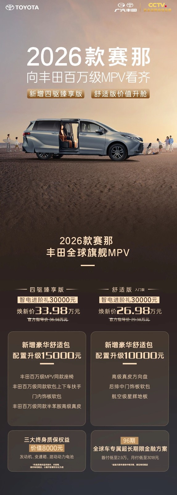 2026款赛那首推四驱航空座椅款,,,,,,,恬静版焕新价26.98万元起