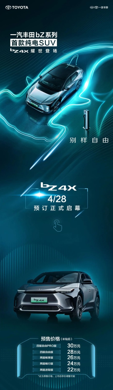 22万元起!一汽丰田bZ4X天下预售开启!