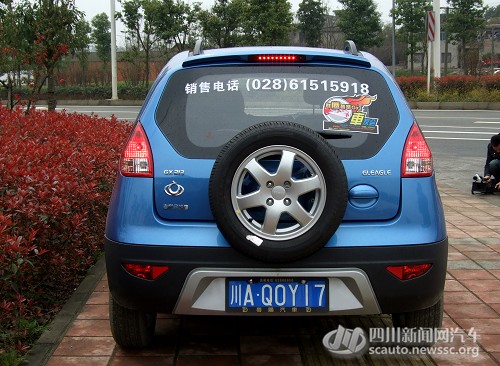 ??? 看过全球鹰GX2后,,,,,,,,你一定会被它的Cross气概的外观所吸引,,,,,,,,Cross特有的车顶行李架,,,,,,,,车尾部外挂式备胎设计,,,,,,,,再加上战斧式的车头,,,,,,,,前双色磨砂包管杠,,,,,,,,两侧深玄色的防擦条,,,,,,,,整车就完全是一个缩小版的SUV。。。。。。。