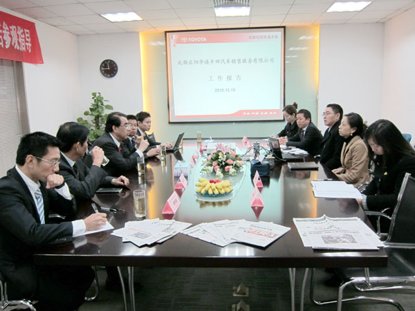??? 12月15日,,,,,丰田通商中国商贸有限公司总代表横井昭正先生一行莅临韦德网站官方入口华通丰田旅行考察。。。。。。。。在公司王麒董事长、陈斌总司理以及各部分司理的陪同下,,,,,横井昭正先生一行旅行了公司的销售展厅、客户接待区和售后维修车间,,,,,他对公司恬静的展厅情形、热情的员工风貌、专业的维修手艺给予了充分的一定和高度的赞扬。。。。。。。。