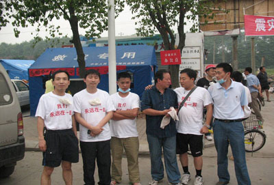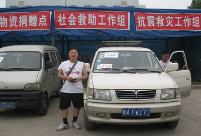 5月17(震后第一个周末),,,,,,,,到成都会三洞桥路6号资助四川省扶贫办转运救灾物资到客栈,,,,,,,,并在天府广场、春熙路等行人麋集区发放赈灾捐助的建议书。。。。。。。