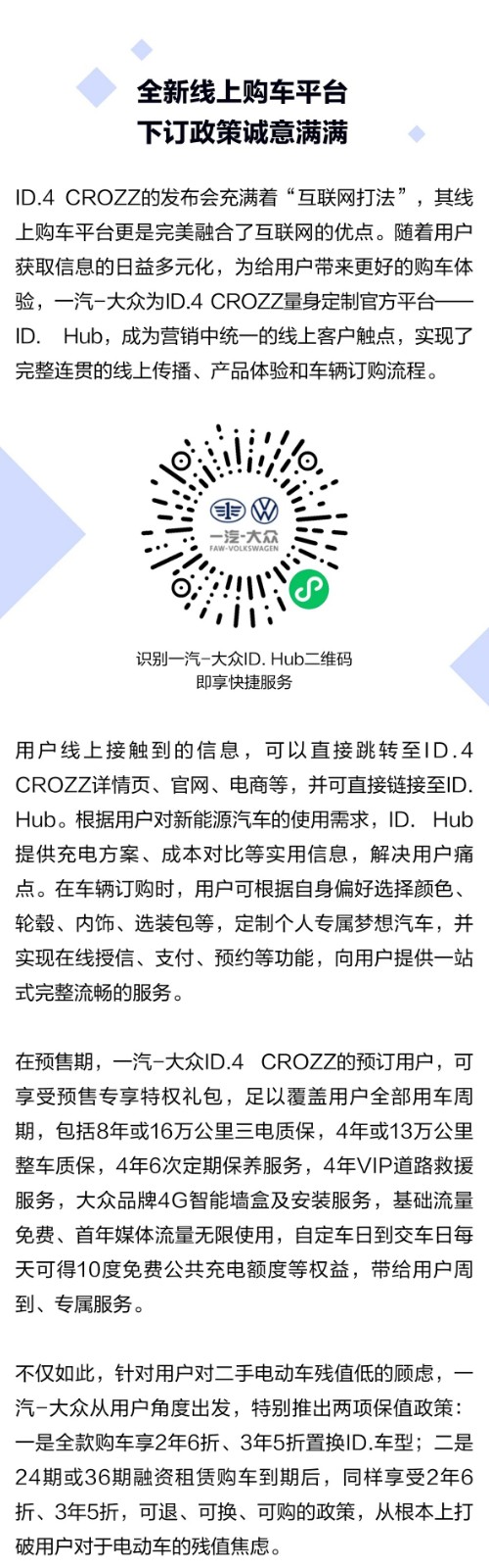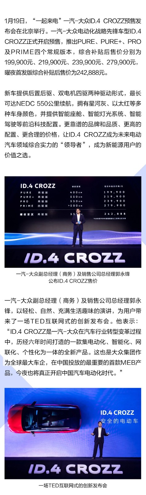 一汽-公共ID.4 CROZZ正式开启预售 售价19.99万元起