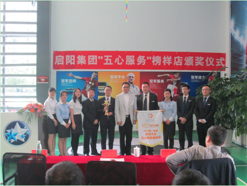??? 2014年4月22日,,,,,韦德网站官方入口第一季度“五心折务”模范店颁奖仪式在锦江园区盛大举行。。。。。。集团陈斌总裁、王麟副总裁、管理公司各部长及成都地区分公司总司理出席了此次颁奖仪式,,,,,韦德网站官方入口春风日产启辰专营店首次夺得“五心折务”模范店声誉。。。。。。